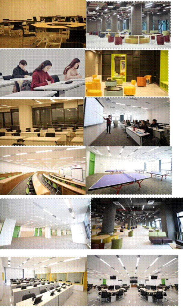 (住宿情况:五人间每套建筑面积为39.8至46.2平米,床铺采用床、书桌椅为一体的组合式高床,室内配有电冰箱、微波炉、洗衣机以及饮水机,独立卫浴,能满足学生日常生活所需。)