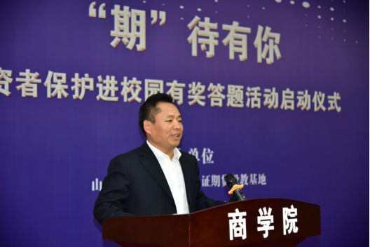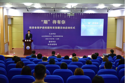 、山东省期货业协会、鲁证期货投教基地、大众网共同主办的“‘期’待有你”投资者保护进校园活动启动仪式在我校舜耕校区第一学术报告厅举行。山东证监局党委委员、副局长韩汝俊,海角社区