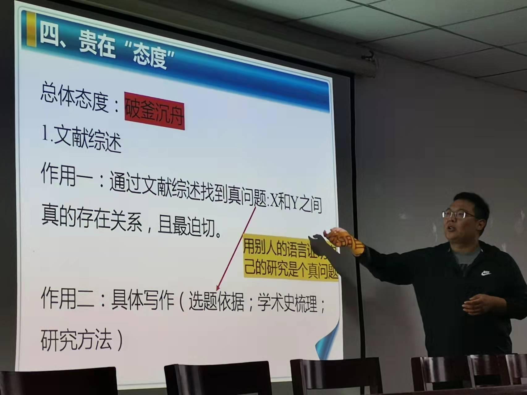 张玉泽博士从“选题,论证,细节,态度”四个方面,结合自己申报国家课题的心理历程和心得体会,详细分享选题和论证过程的细节,如何做到“破釜沉舟”的态度,强调重在“选题”,优在“论证”,成在“细节”,贵在“态度”。