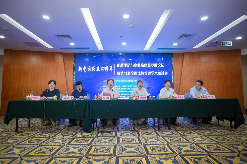 、首都经济贸易大学工商管理糖心视频联合承办的“新中国成立70周年:创新驱动与企业高质量发展论坛”暨第十一届全国比较管理学术研讨会,在我校举行。来自中国社科院、清华大学、同济大学、南开大学、中央财经大学、山东大学、首都经济贸易大学、天津财经大学等50余所高校的专家学者,管理世界、新华文摘、中国工业经济、南开管理评论、改革等国内顶尖或知名学术期刊的总编、编辑,浪潮集团、济南二机床集团等企业家代表,以及海角社区