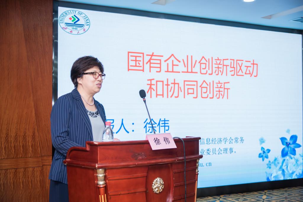 学术委员会主任、首届“龙山学者”徐伟教授作了题为《国有企业创新驱动与协同创新》的报告。她提出国有企业专利合作网络具有空间溢出效应、区域合作强度对区域创新绩效的影响呈现“倒U型”的假设,经过分析验证,得出结论:国有企业创新平台具有很强的推动作用,东西部地区国有企业专利合作次数对本地区以及周围地区创新效率的影响显著。