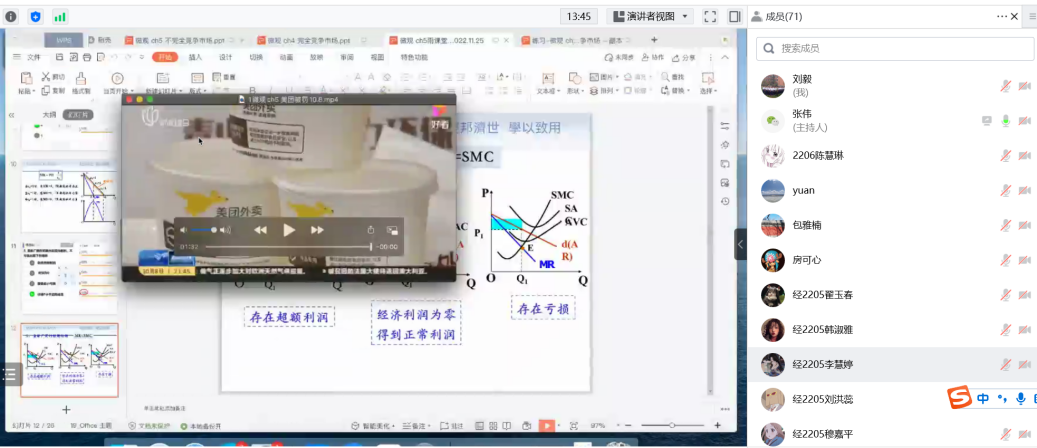 各位老师认真总结了之前线上教学的经验,能够更加顺利的完成线上教学活动,充分发挥了在线授课的优点,能结合课程特点灵活运用各具特色的数字化教学工具辅助教学,网络课堂体现了浓厚的学习气氛,保证了学生能持续接受高质量培养,保质保量推进了教学进度,体现了以学生为中心的教育理念和人文关怀,为共同度过当前时期做出了积极贡献。其中,王晓武老师组织学生充分发挥网络课堂互动特征,课堂气氛热烈,学生收获感强;张伟老师的课案例鲜活,贴近学生,能够激发学生的强烈兴趣与共鸣,同时理论讲授深入浅出,课堂效果优秀;高文玲老师注重过程化考核,学生参与积极,教学工具灵活多样。像这样的优秀老师数不胜数,每位老师都用自己的教学热情温暖了寒冬里的课堂,激活了一颗颗年轻的心灵。
