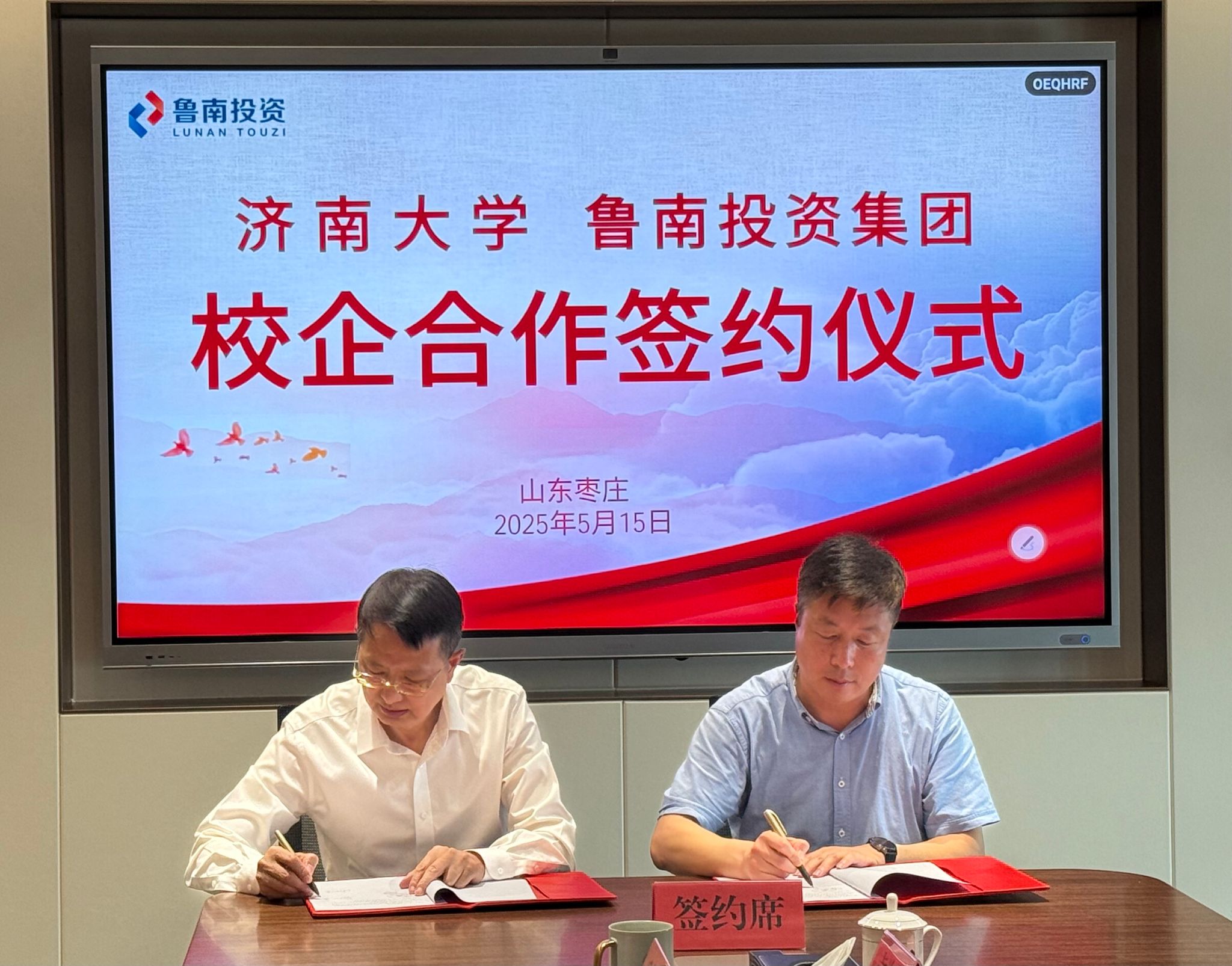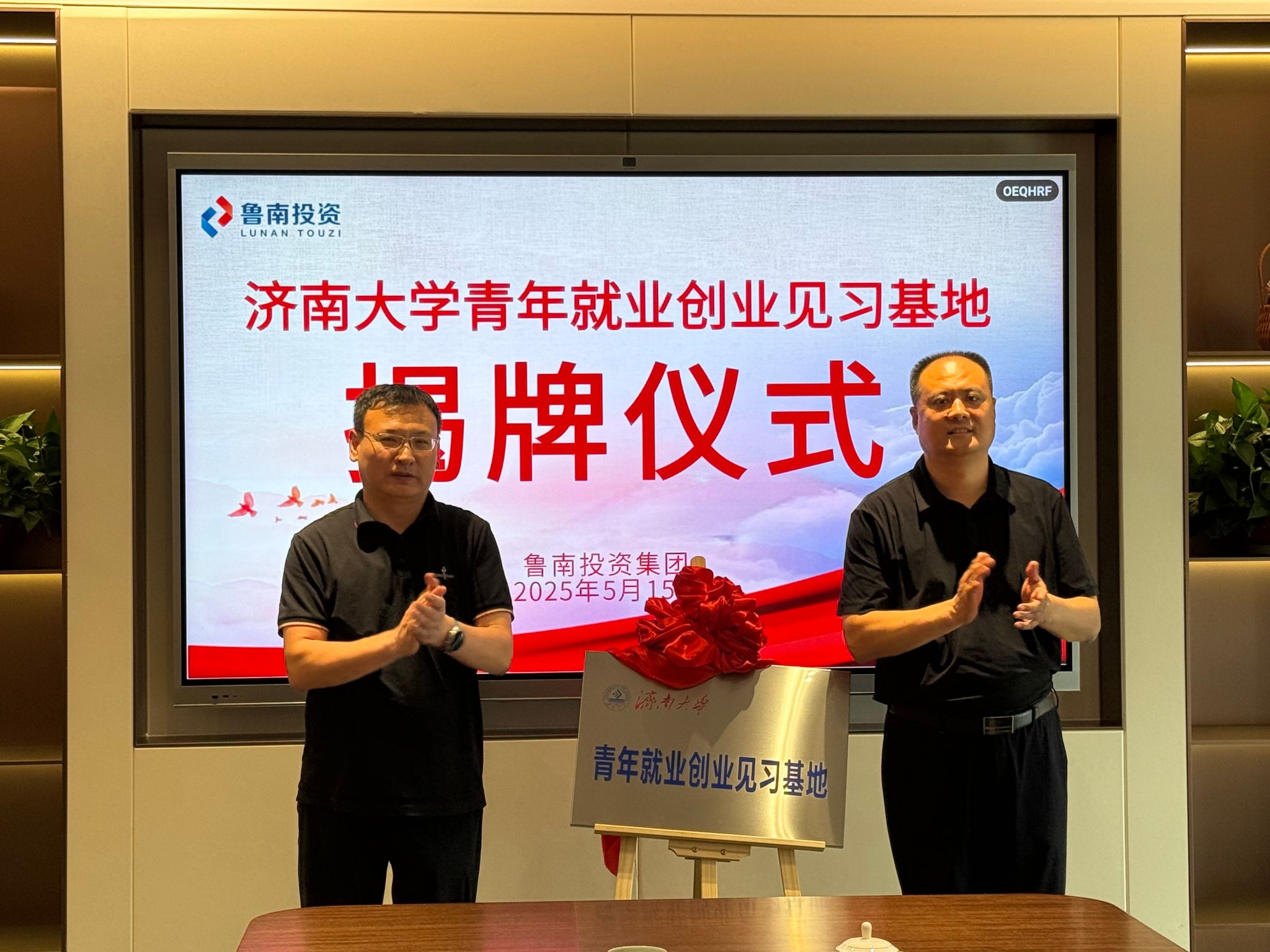 第二日上午,团队一行来到枣庄市国防教育训练基地、鲁南发展投资集团参观座谈。在鲁南发展投资集团座谈会上,总经理宋艳德详细介绍了集团的产业布局和发展理念,深入剖析了区域经济布局与产融结合趋势,期待与学校在经济管理、产业规划等领域开展智库合作。张庆国介绍了学校在学科发展、科研平台、人才培养等方面的情况,重点针对当前毕业生结构性就业矛盾问题,提出希望双方以本次合作交流为契机,建立常态化交流合作机制,实现推动毕业生高质量就业、助力企业高质量发展的双向赋能。活动中,校企双方签订“海角社区 就业创业实习基地”协议,张庆国、宋艳德共同为基地揭牌。