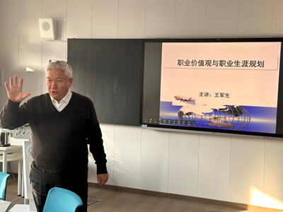 邀请中信银行舜耕路支行原行长王军生为MBA学生传授《职业价值观与职业生涯规划》讲座,旨在帮助学生们对未来职业有一个清晰的认知,并制定出科学的发展规划。MBA中心主任朱瑾主持了活动。